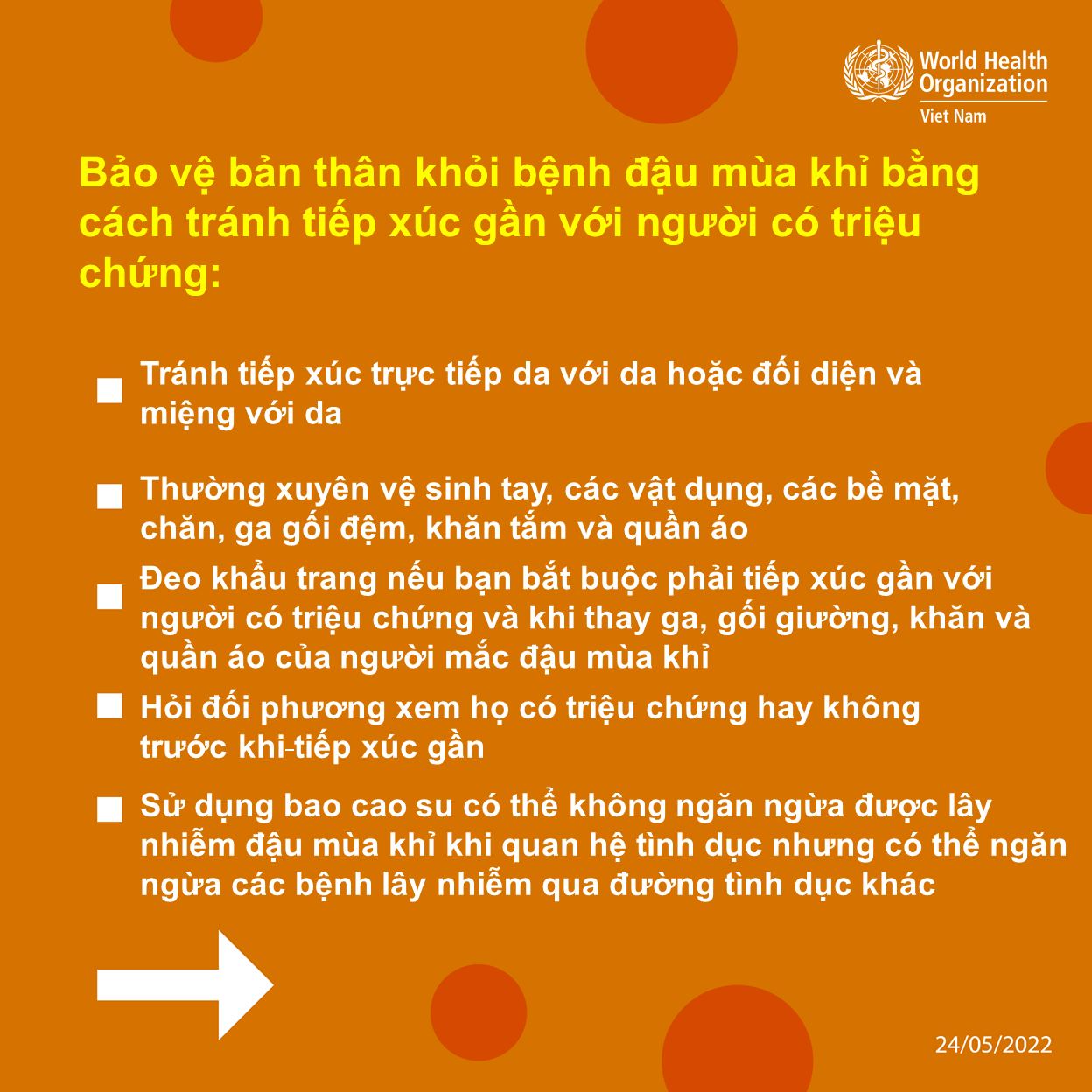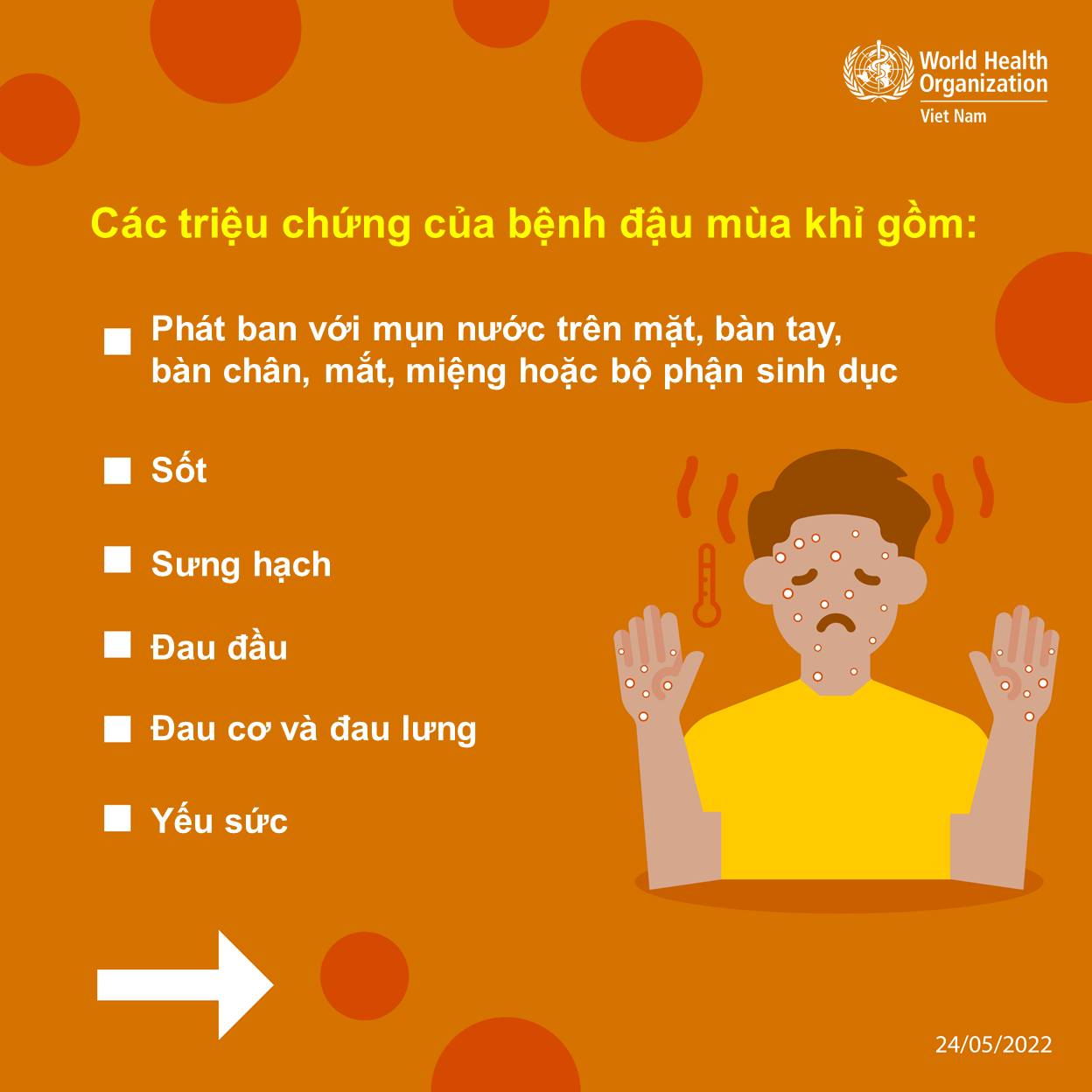 Cập nhật về bệnh đậu mùa khỉ của WHO: https://www.who.int/vietnam/vi/news/questions-and-answers/q-a-detail/monkeypox/?fbclid=IwAR1pPIi7YWofI92XytVRg1HbwNDOH5PI6AyRBNQGjuOE3jEqIRWDJQ7vBVk