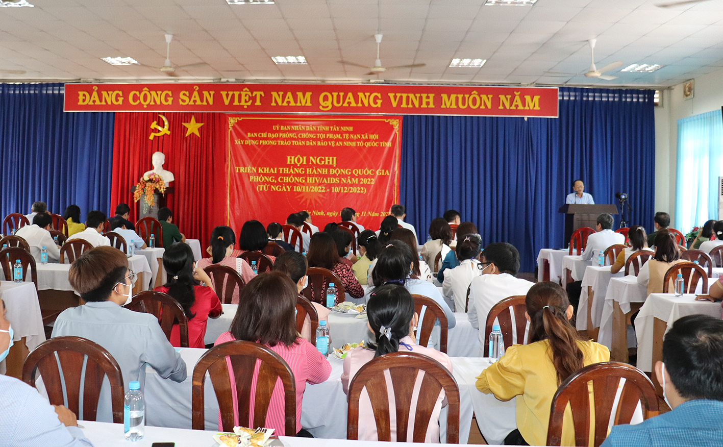 Sáng ngày 10.11, Ban Chỉ đạo phòng chống tội phạm, tệ nạn xã hội và xây dựng phong trào toàn dân bảo vệ an ninh tổ quốc tỉnh Tây Ninh tổ chức lễ phát động triển khai Tháng hành động quốc gia phòng chống HIV/AIDS năm 2022.